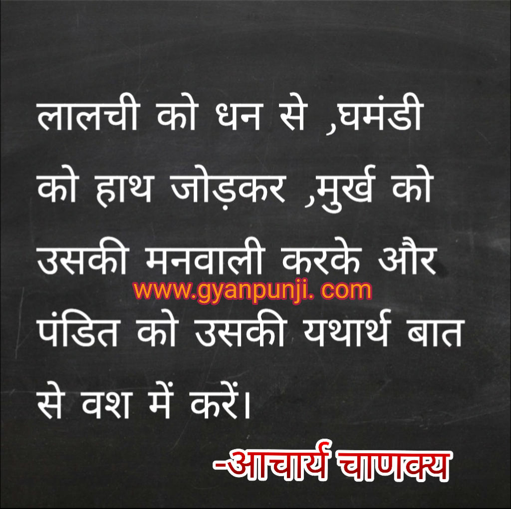 लालची को धन से ,घमंडी को हाथ जोड़कर ,मुर्ख को उसकी मनवाली करके और पंडित को उसकी यथार्थ बात से वश में करें।
