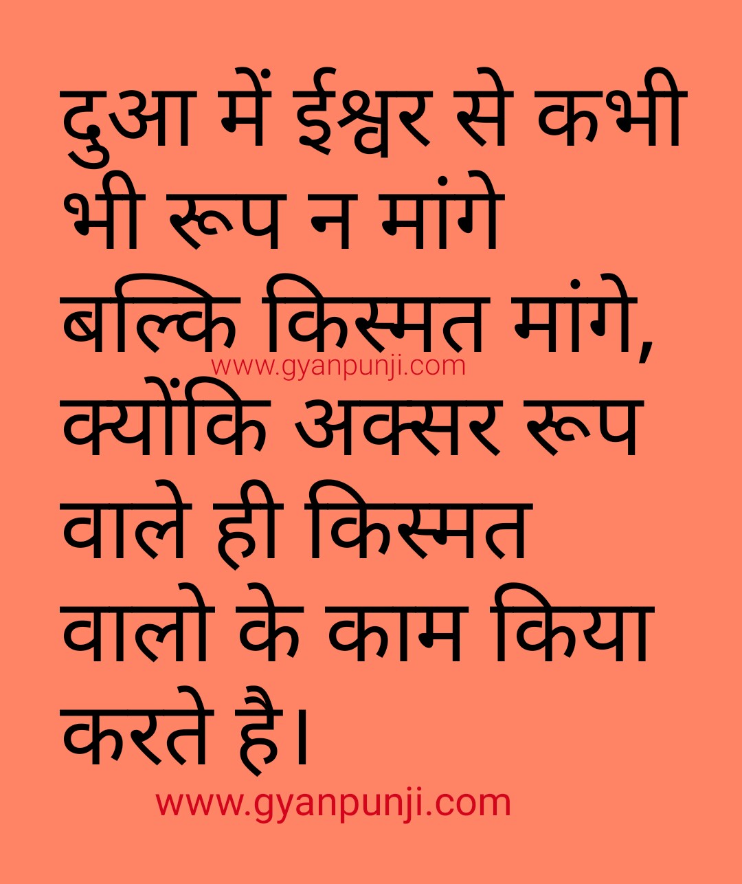 इसलिए भगवान से रूप न मांगे बल्कि किस्मत मांगे क्यूंकि अक्सर रूप वाले ही किस्मत वालो के गुलाम हुआ करते है।